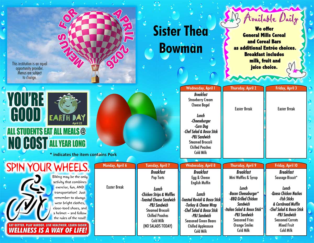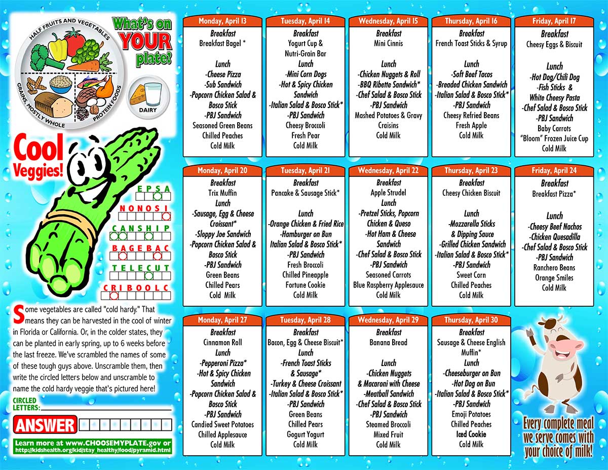 Menu Healthy Breakfast, Lunch & Snacks Menu for April Posted on March 26, 2026 by SrTBowmanCS Here’s your Healthy Breakfast, Lunch and Snacks for April! CLICK THE IMAGES BELOW FOR PRINTABLE!