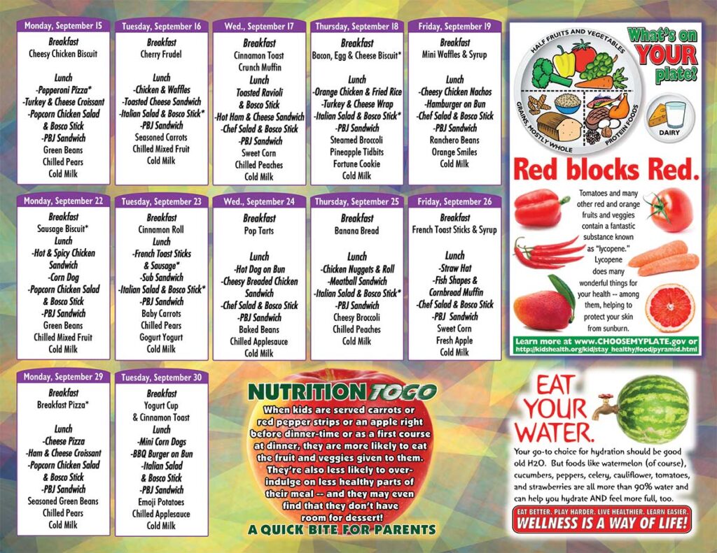 Menu, News Healthy Breakfast, Lunch & Snacks Menu for September Updated on November 12, 2025 by SrTBowmanCS Here’s your Healthy Breakfast, Lunch and Snacks for September! CLICK THE IMAGES BELOW FOR PRINTABLE!
